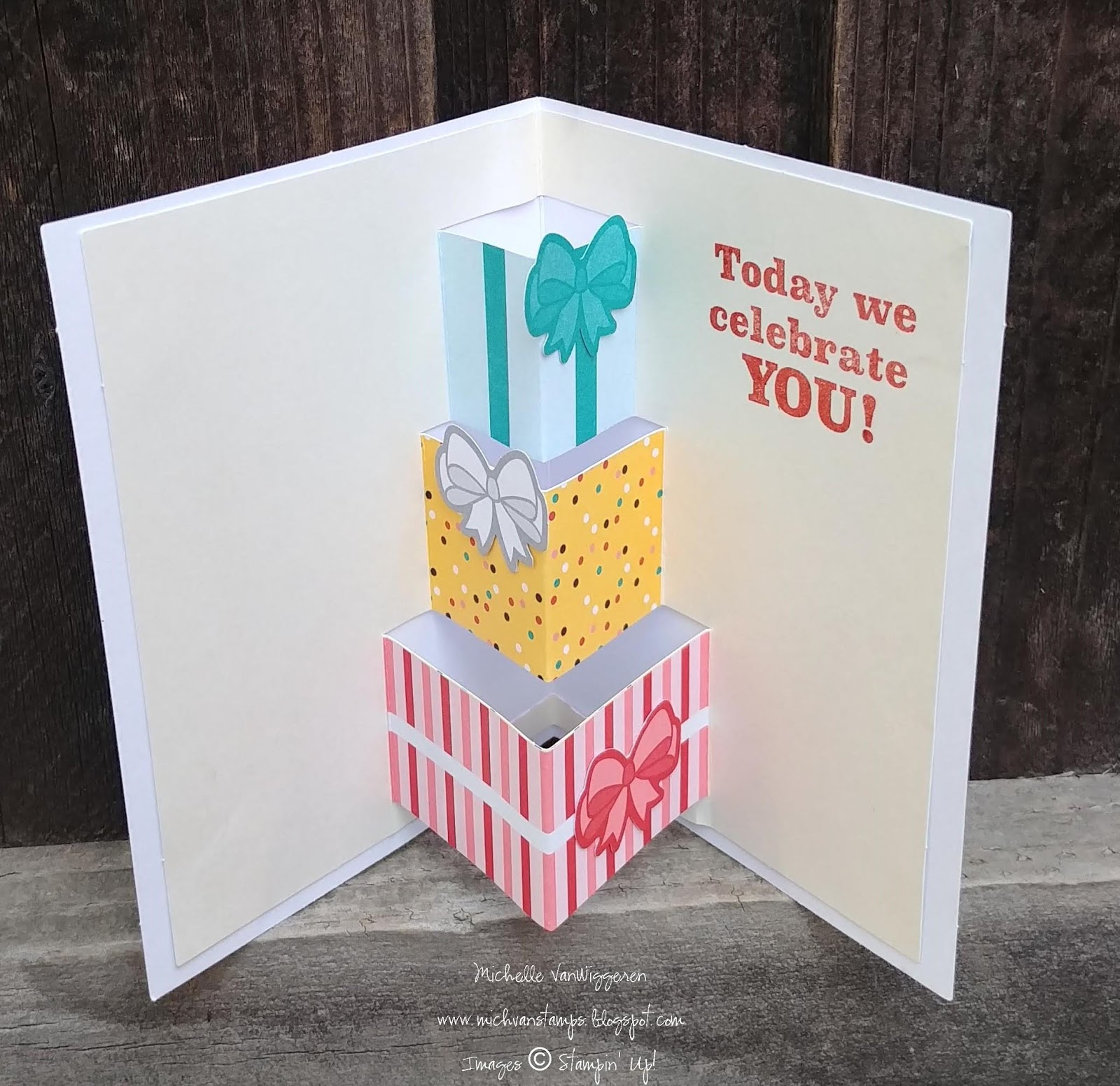 Kallien showed us how to make this "Squash-fold" style card that she created using Painted Seasons Designer Series Paper (a Sale-a-Bration item, only available while supplies last or until Sunday!):